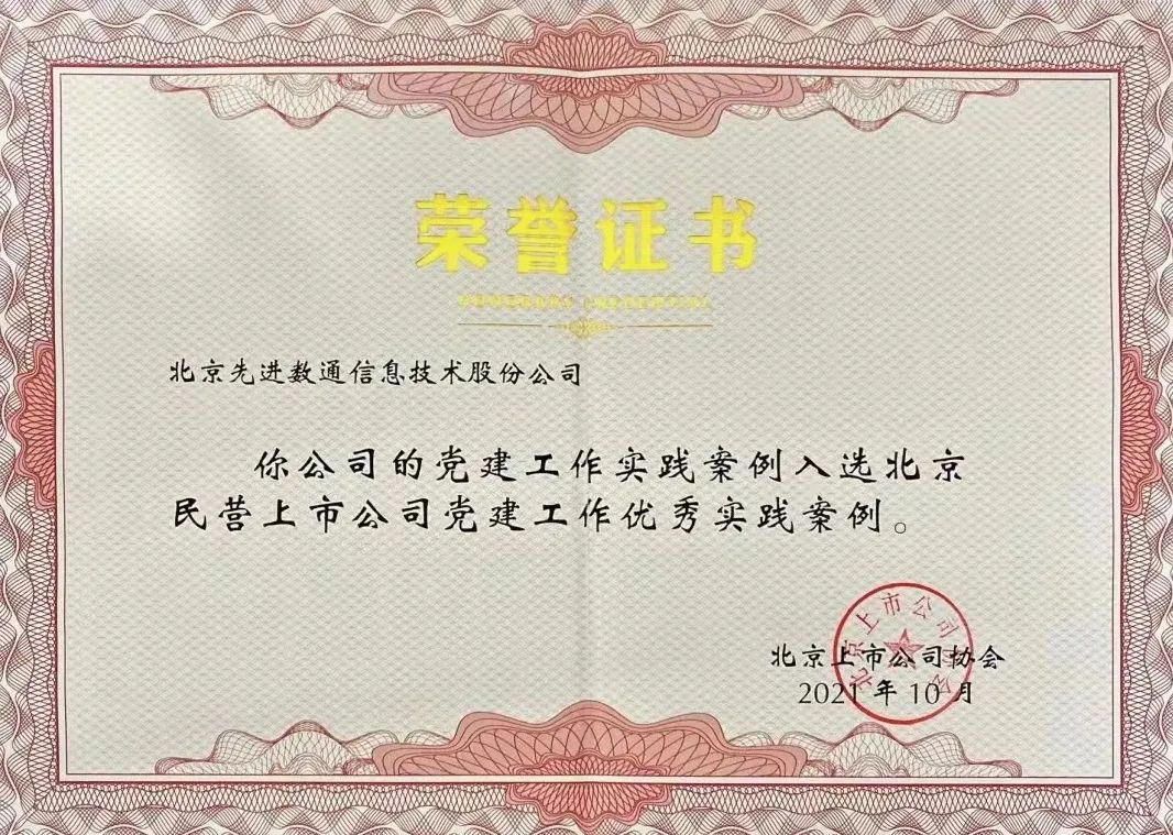 近期,北京上市公司协会授予北京evo真人视讯信息技术股份公司荣誉证书,evo真人视讯党建工作实践入选北京民营上市公司党建工作优秀实践案例,相关党建活动已收录在《北京民营上市公司党建工作优秀实践案例汇编》。
