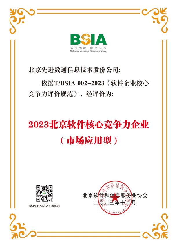 evo真人视讯荣获“2023北京软件核心竞争力企业”荣誉