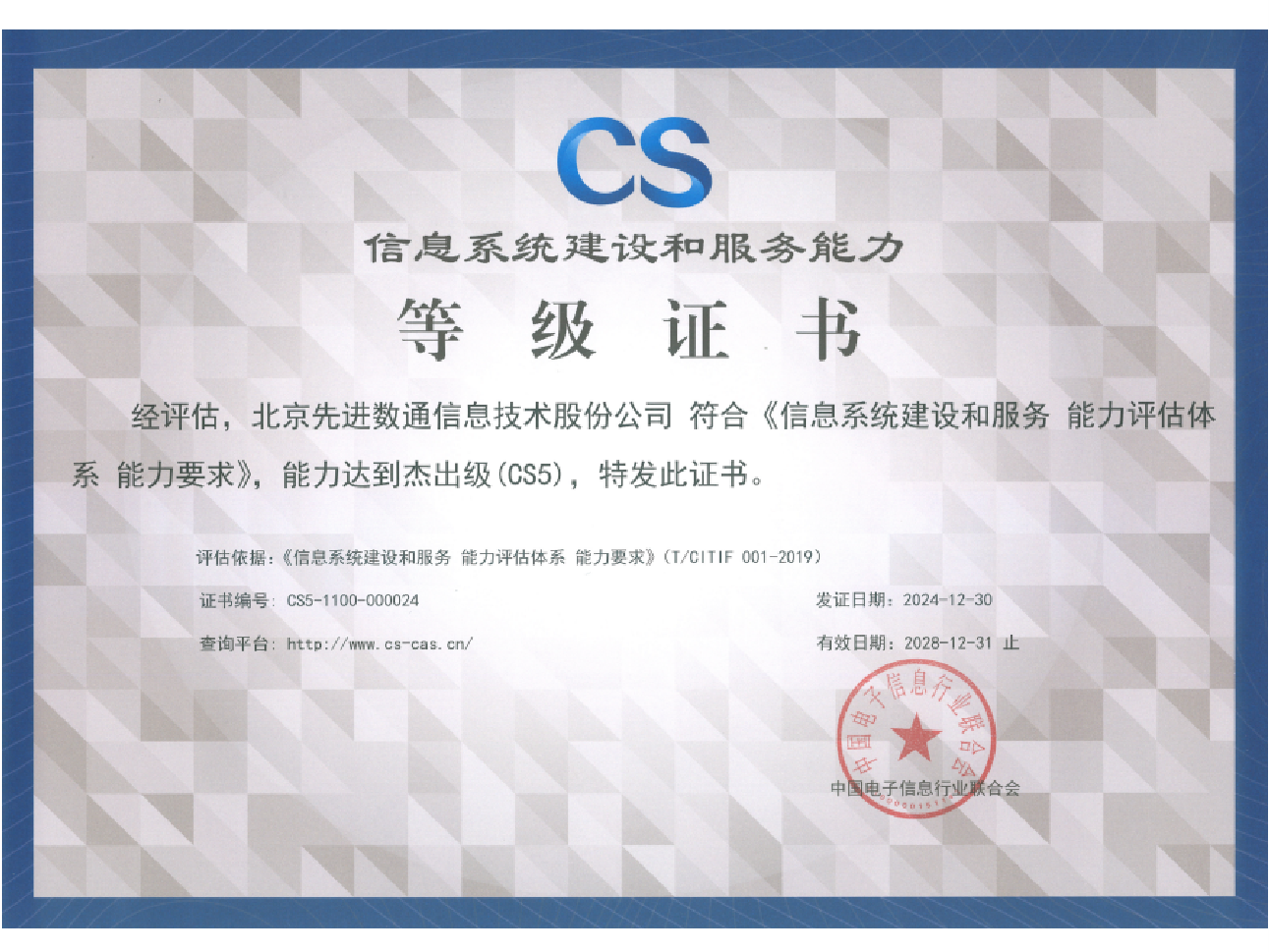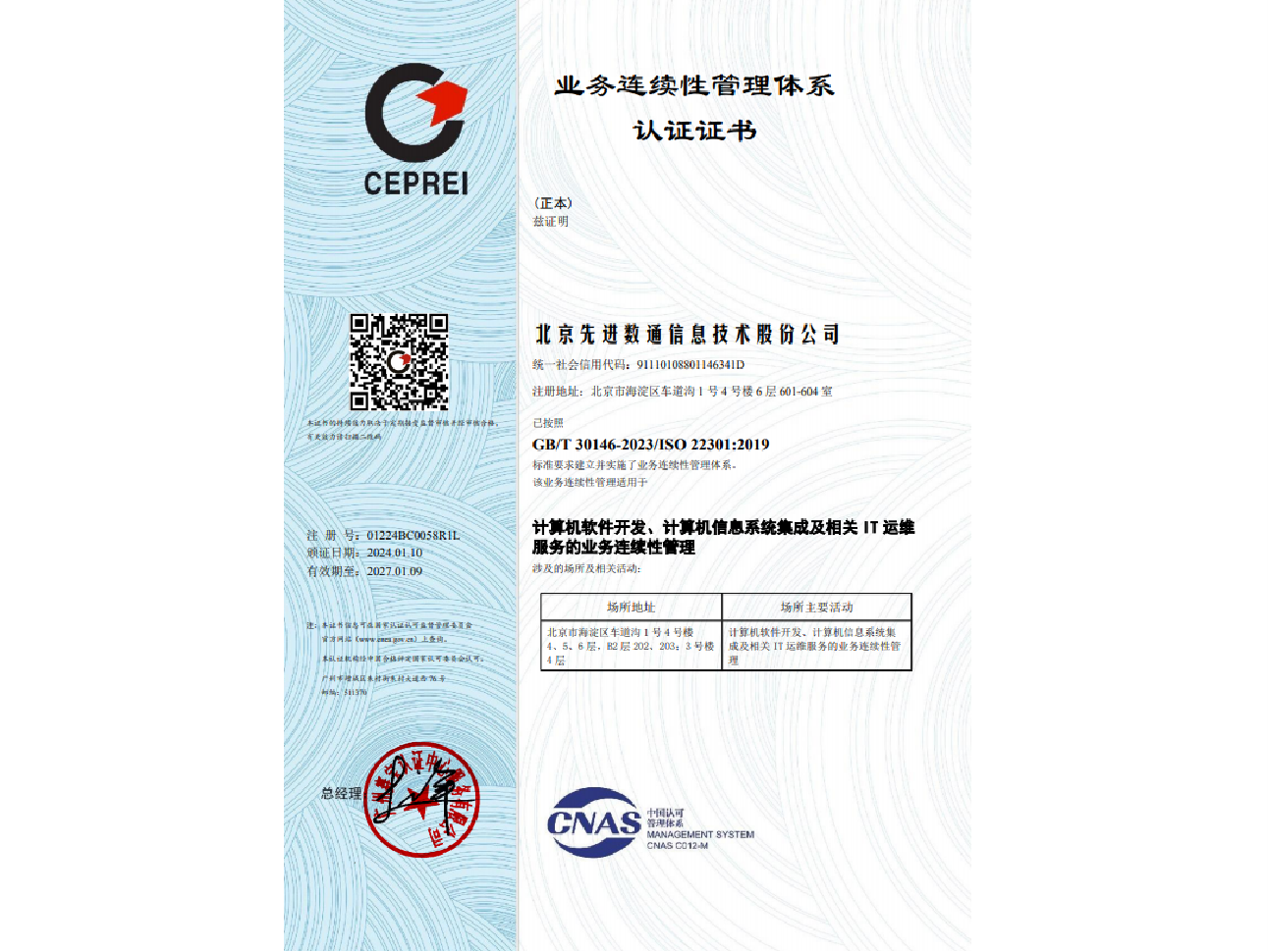 evo真人视讯先后取得CMMIL5、软件能力成熟度五级(SPCA 5)、信息系统建设和服务能力评估体系(CS)5级、ITSS成熟度一级、信息系统安全集成服务资质二级、信息系统安全运维服务资质二级、国产化信息系统集成和服务能力评估四级(LS4)、北京市企业技术中心等资质认证,并取得ISO9001、ISO20000、ISO27001、ISO14001、ISO45001、ISO22301、ISO37001、ISO28001、GBT29490等标准体系认证,具备行业领先的技术开发、工程实施及服务保障能力。